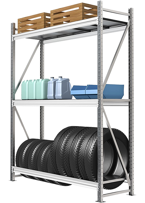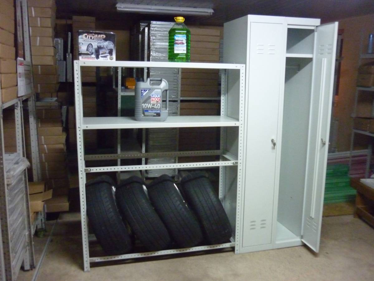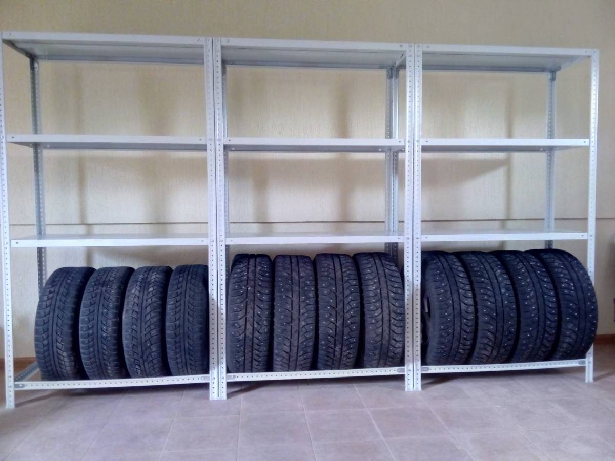 Стеллажи для гаража универсальны, т.к. на них можно хранить инструменты, запчасти, шины и диски.