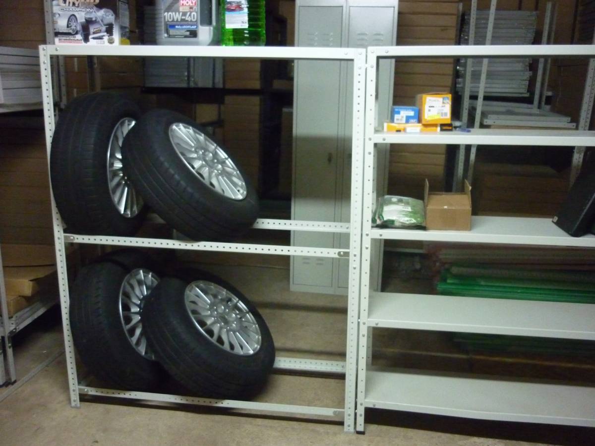 Стеллажи используются при организации хранении автомобильных принадлежностей в гараже. Стеллаж для автомобильных колес.